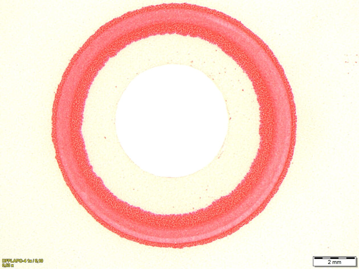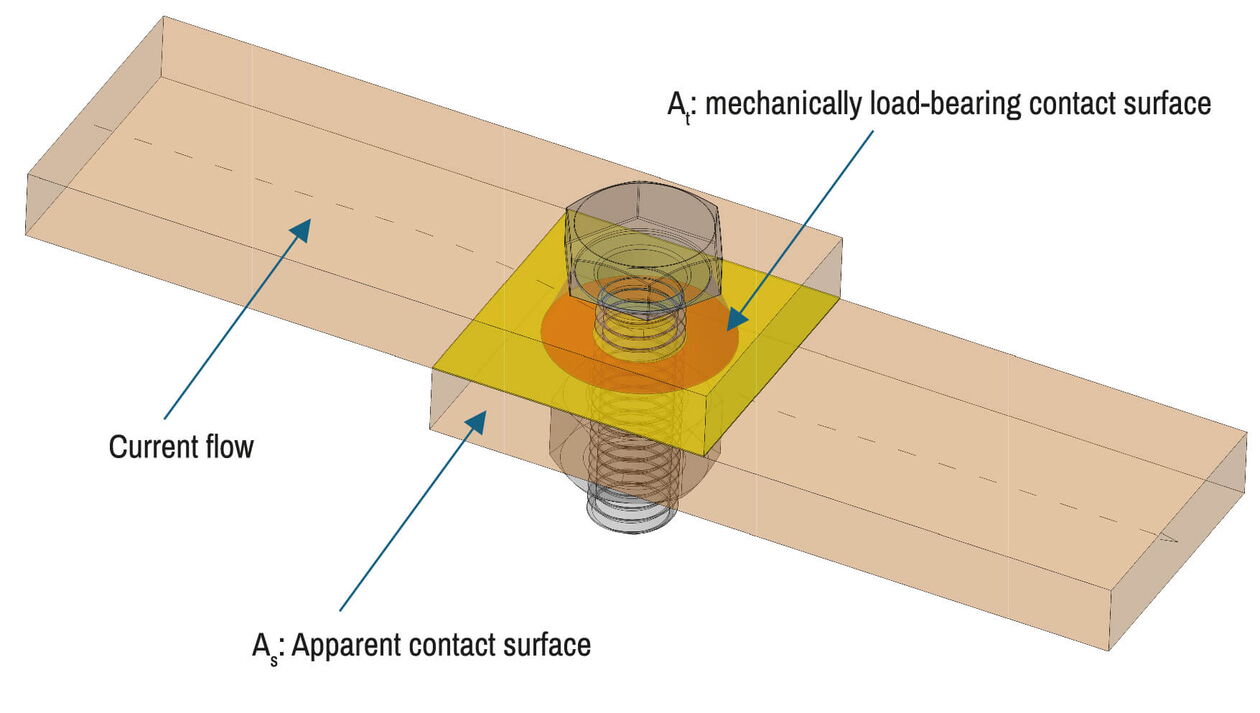 The contact resistance of the connection depends on the contact pressure over the entire surface. A low contact resistance / good current flow only exists at the surface areas with high, uniform contact pressure.