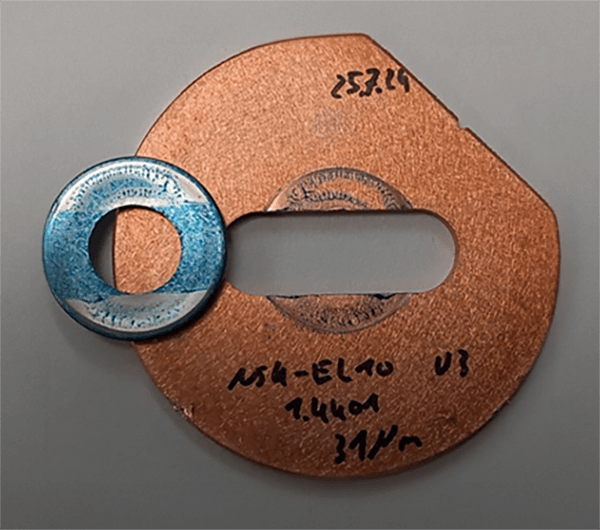 Application-orientated testing based on the requirements of DIN 25201-3. With samples made of copper material, slotted holes and with reduced preload forces.